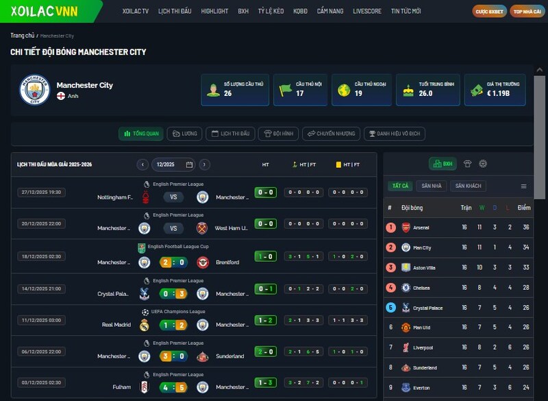Điểm cộng lớn nhất khiến mình tin dùng Xoilac Vnn là tốc độ cập nhật. Anh em theo EPL chắc hiểu cảm giác bực mình khi trận đấu đã kết thúc, kết quả đã rõ, mà bảng xếp hạng trên một số trang vẫn “đứng hình”.