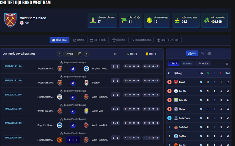 hông chỉ cung cấp tỷ số cuối cùng, chuyên trang còn mang đến cho người xem hệ thống thông tin chi tiết, bao gồm: